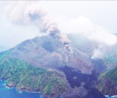 and hurling lava and smoke into the sky. The volcano on Barren went